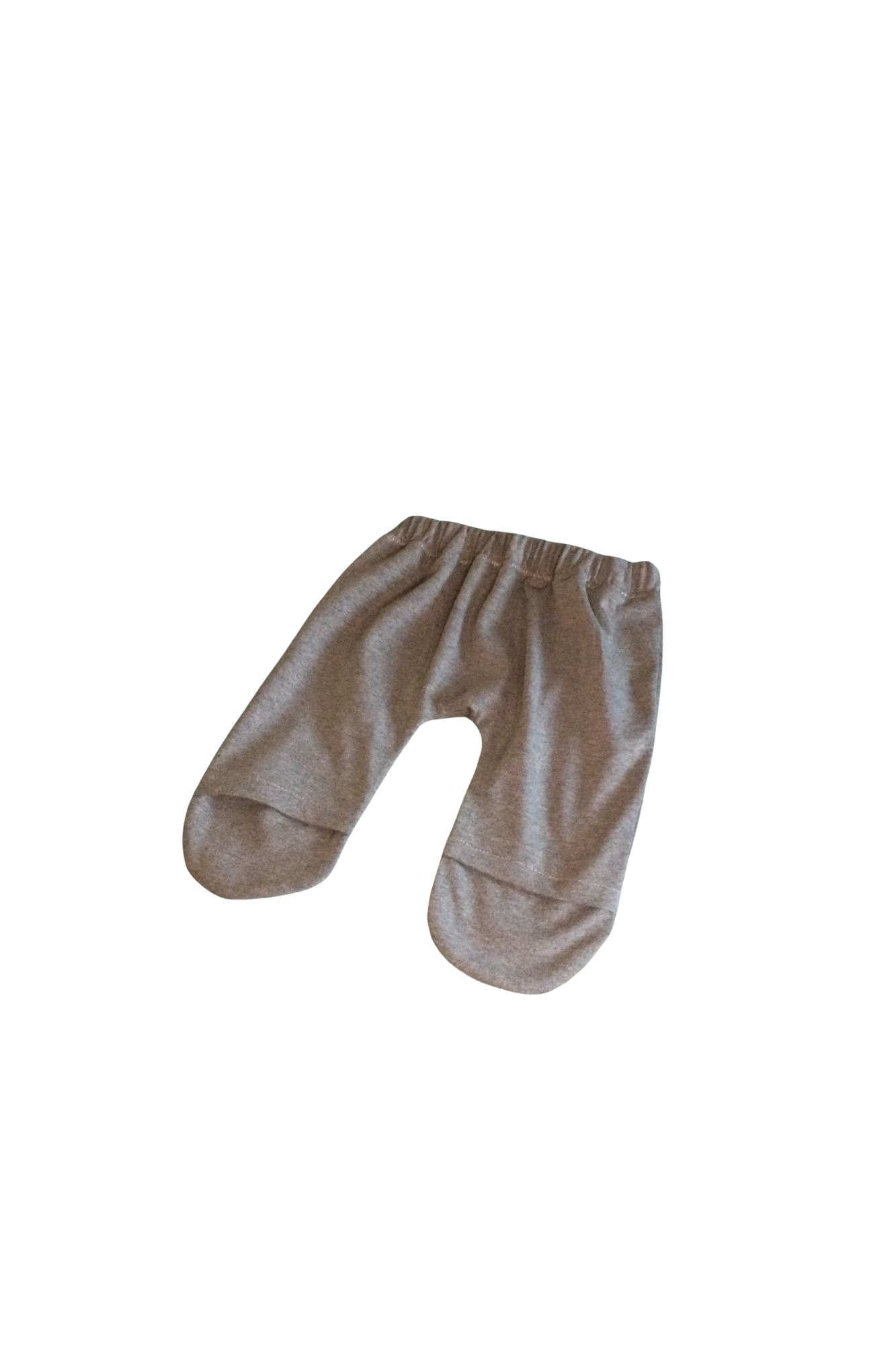 NB, fall or winter pullover sweater. Made from knit fabric with black and grey stripes. Grey stretch pants to match. Handmade in USA.
